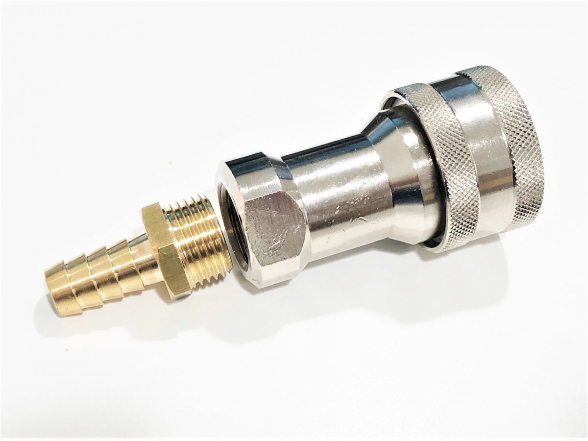 Brass hose connector to connect deck wash system to piping .