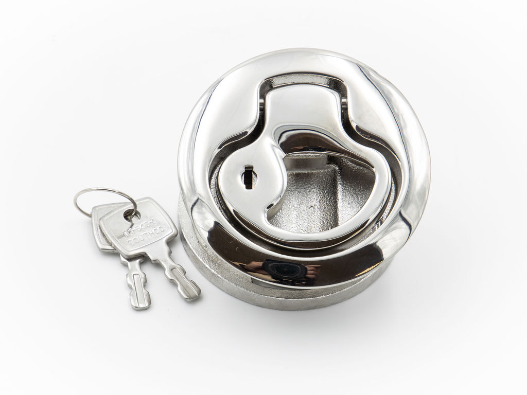 South co locking door latch M1-44-8 Hole diameter 60mm- total outside circumference 65mm – made from 316 stainless steel
